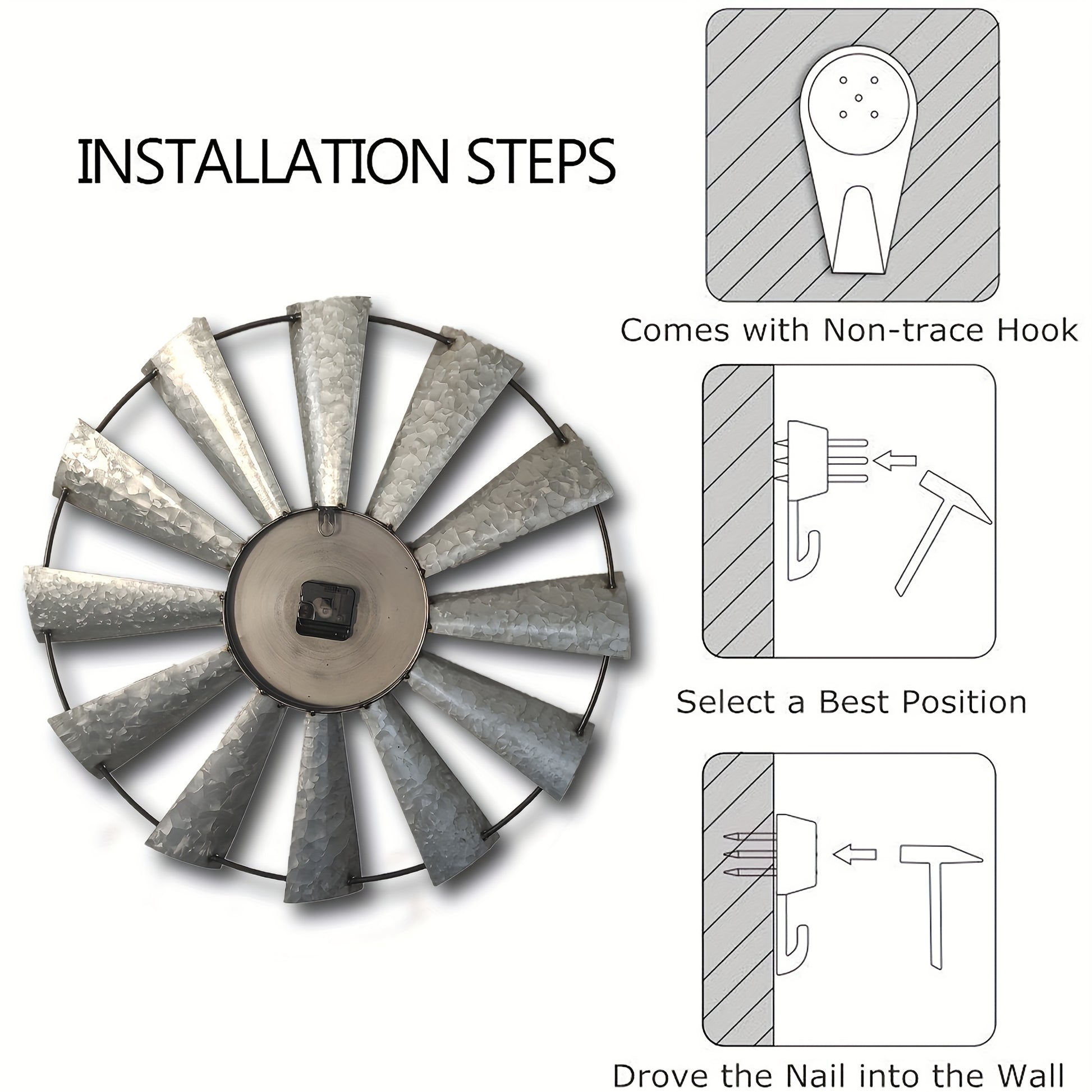 Large Farmhouse Decor Metal Clock for Home and Kitchen