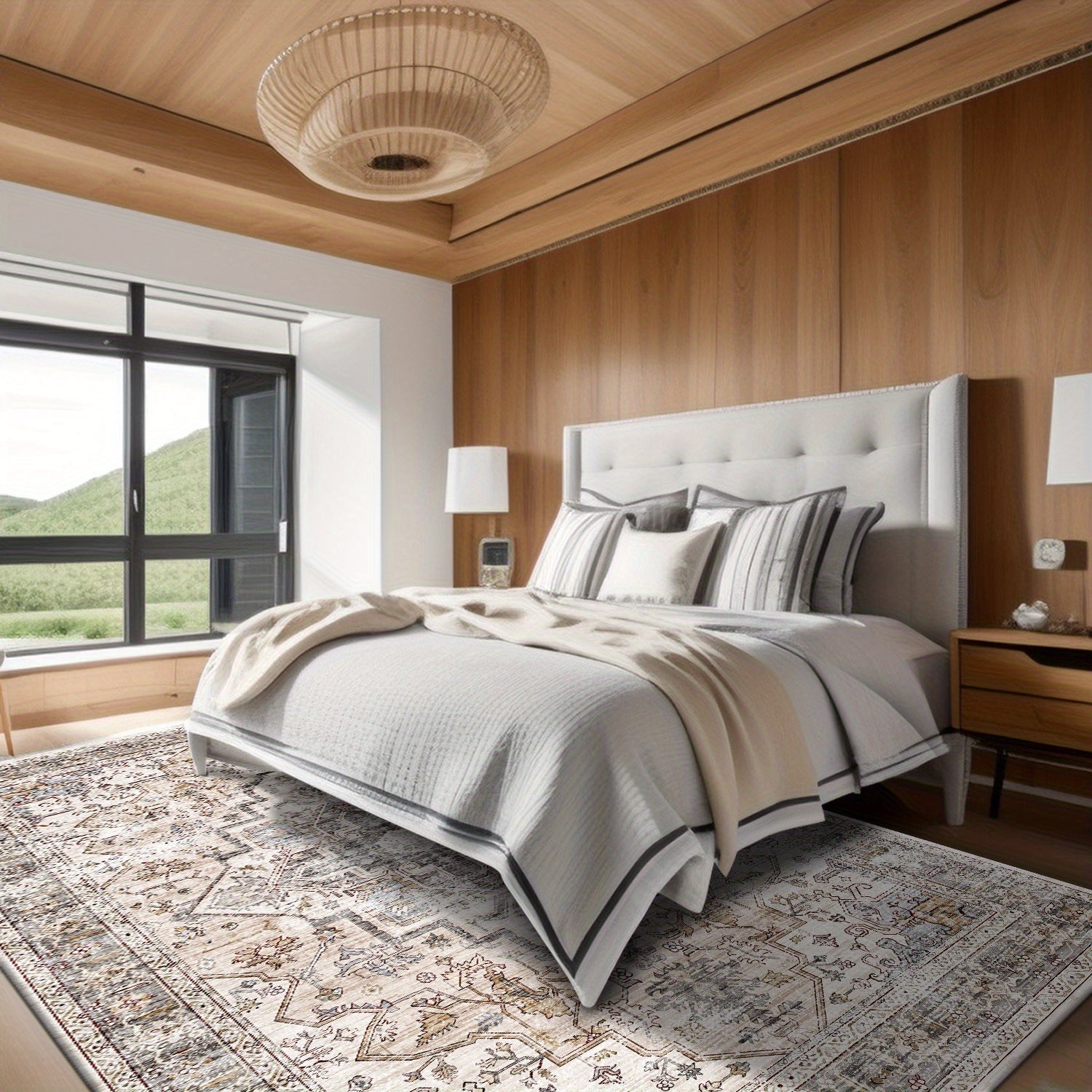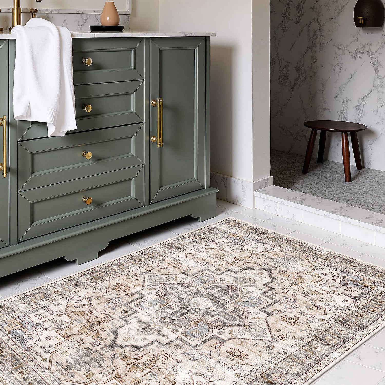 Bohemian Beige Washable Area Rugs for Living Room and Bedroom
