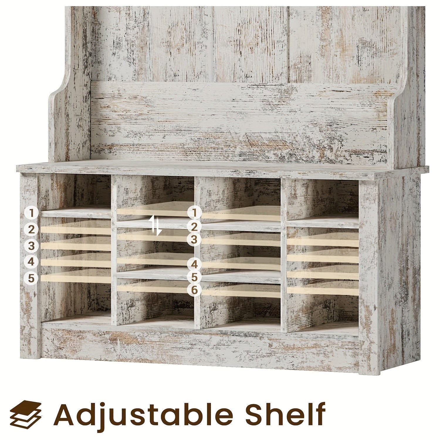 This multipurpose entryway furniture is perfect for busy households, allowing you to keep your shoes, coats, and accessories neatly stored and easily accessible. With adjustable shelves, you can customize the layout according to your needs, making it an optimal choice for any entryway setup.