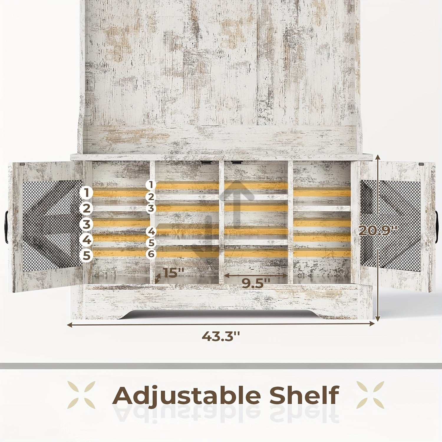 The 5-in-1 design features a coat rack, shoe bench, shoe rack, and three top storage compartments, all in one compact unit. This innovative design not only saves space but also keeps your entryway organized and clutter-free. Enjoy the convenience of: