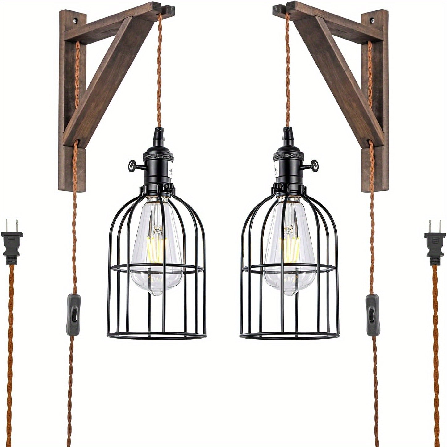 Complement your decor with a stylish yet practical lighting solution. Experience the perfect combination of form and function with this stunning set. Don’t miss out on the chance to enhance your home’s atmosphere—order your Rustic Plug In Wall Sconces Set today!